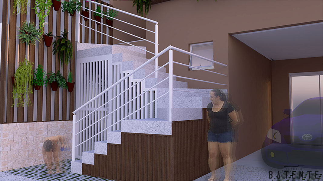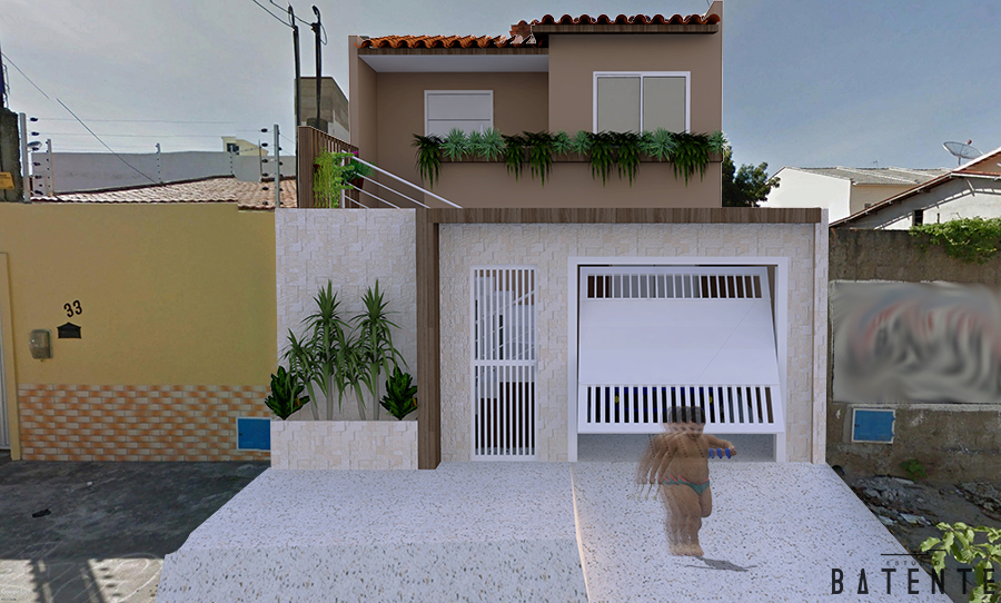 A Fachada da Residência Liliane é uma remodelação pensada para atender a necessidade de uma residência multifamiliar. Em cada pavimento mora uma família, logo se faz necessária pensar em acessos independentes.