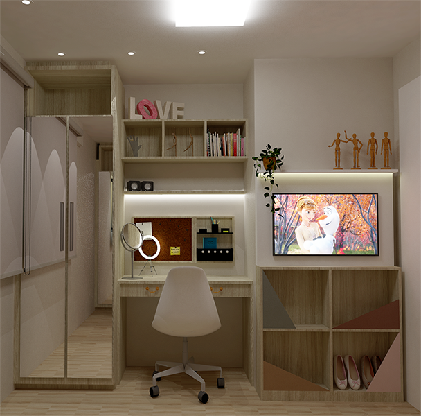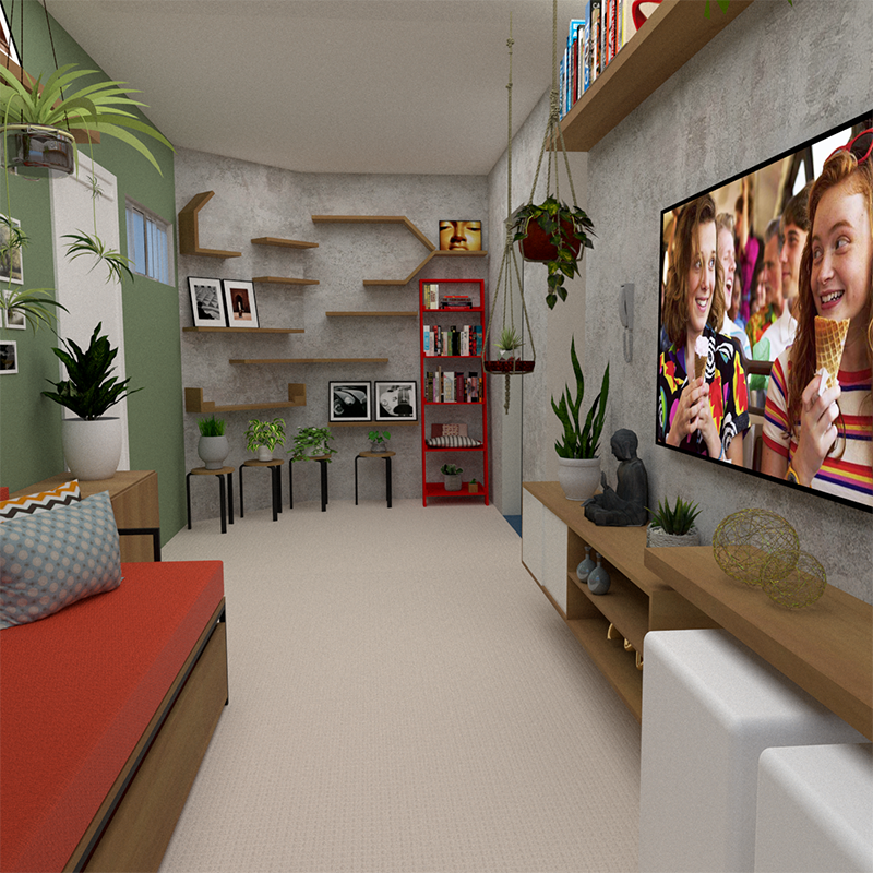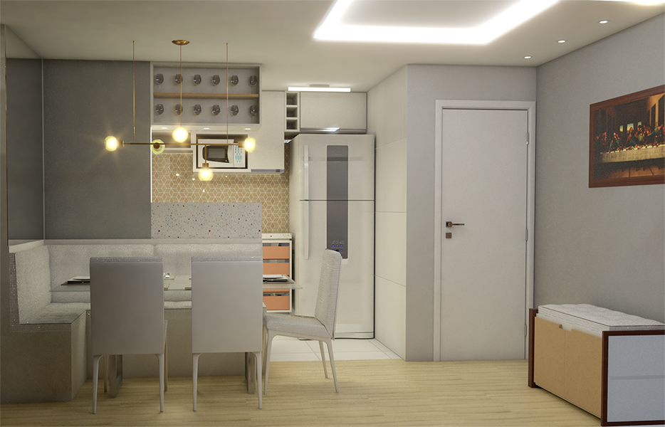 Esse projeto foi feito para um jovem casal e sua filha. A proposta é projetar um apartamento padrão de 3 quartos de forma a melhor aproveitar os espaços e oferecer conforto aos habitantes e aos visitantes. A Paleta de cores é suave e alegre.